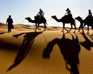 Upon arrival at the camp, you will embark on a camel ride in the sand dunes.